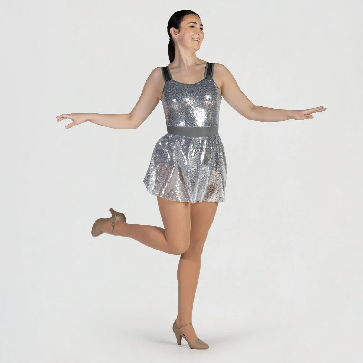 - Designed to dazzle, this 1st Position dress is replete with sequins, with your every move accentuated under the lights. The silver/grey appearance is perfect for space and futuristic themes, in a costume that is truly out of this world.