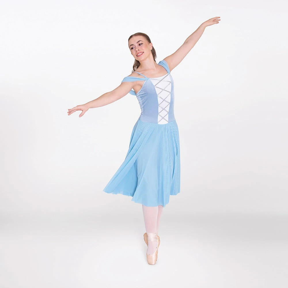 Ice princesses and Cinderellas are inspired to light up the stage in this subtly eye-catching ballet dress from 1st Position. The velour and elastane bodice is complemented by metallic lace corset detail, which sees dancers twinkle under the spotlight.