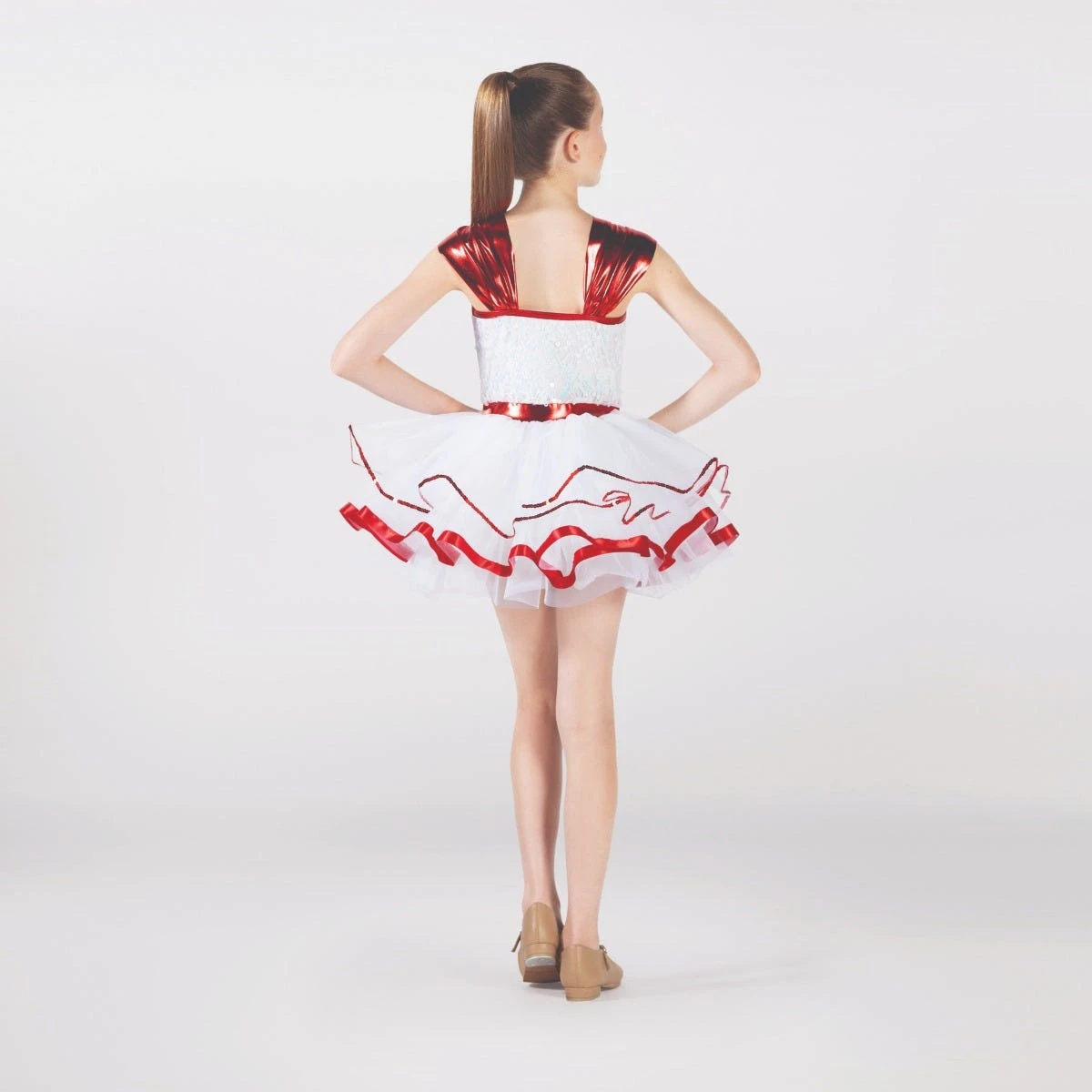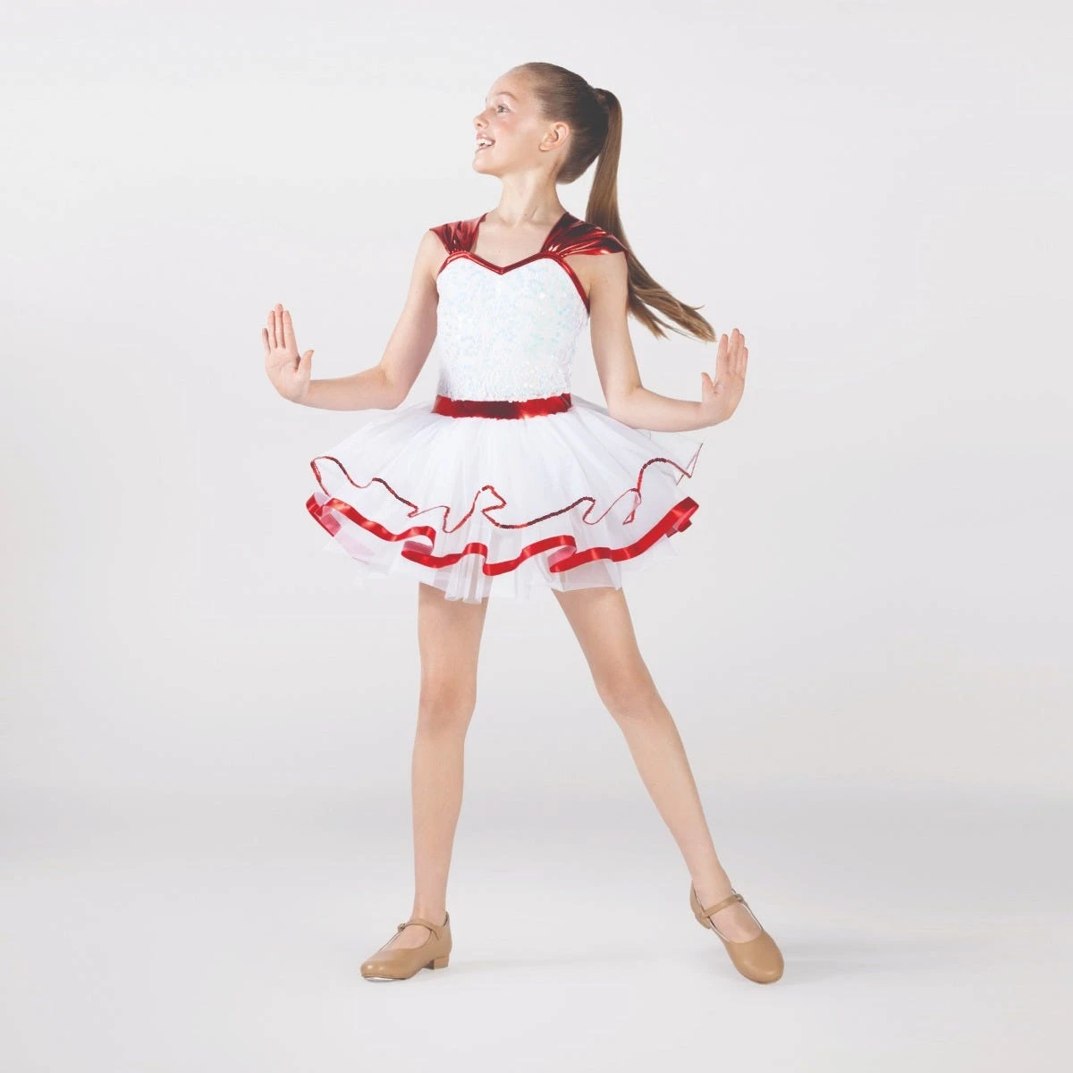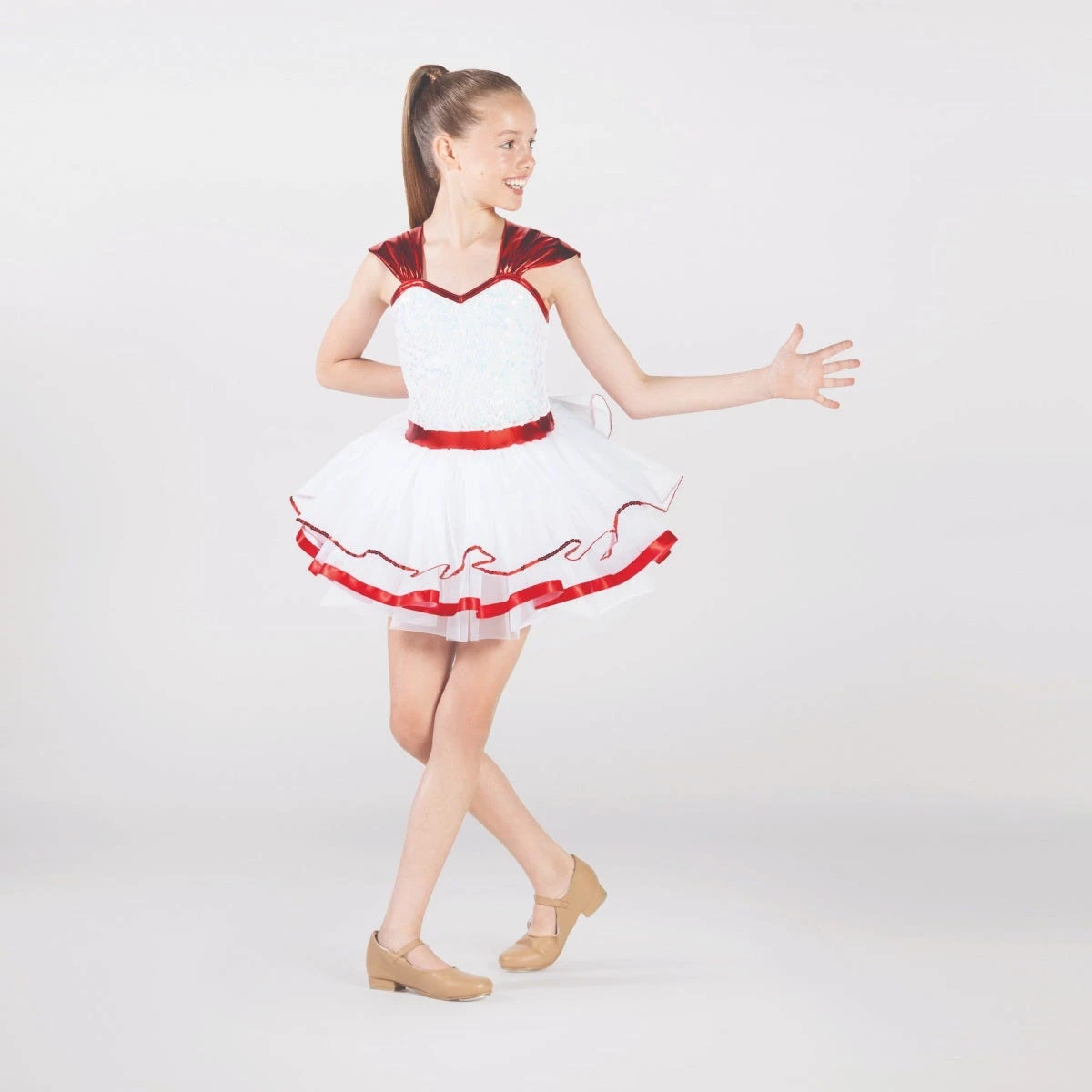 - This prestigious 1st Position tutu is set apart with striking metallic red trim which perfectly complements the white bodice and tutu. Perfect for Christmas performances and a range of themes.
