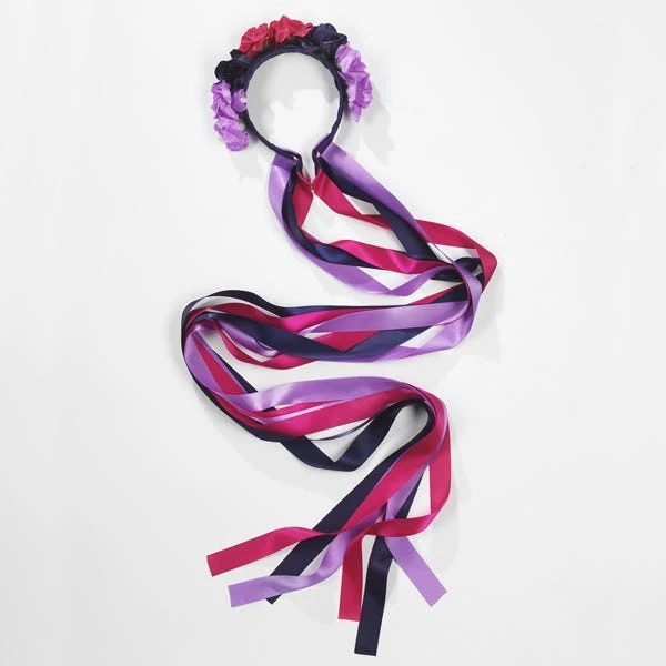 * Headband featuring pretty flowers in navy blue, fuchsia & purple with matching dark coloured long ribbons