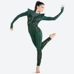 - Spandex, mesh, and sequin mesh unitard